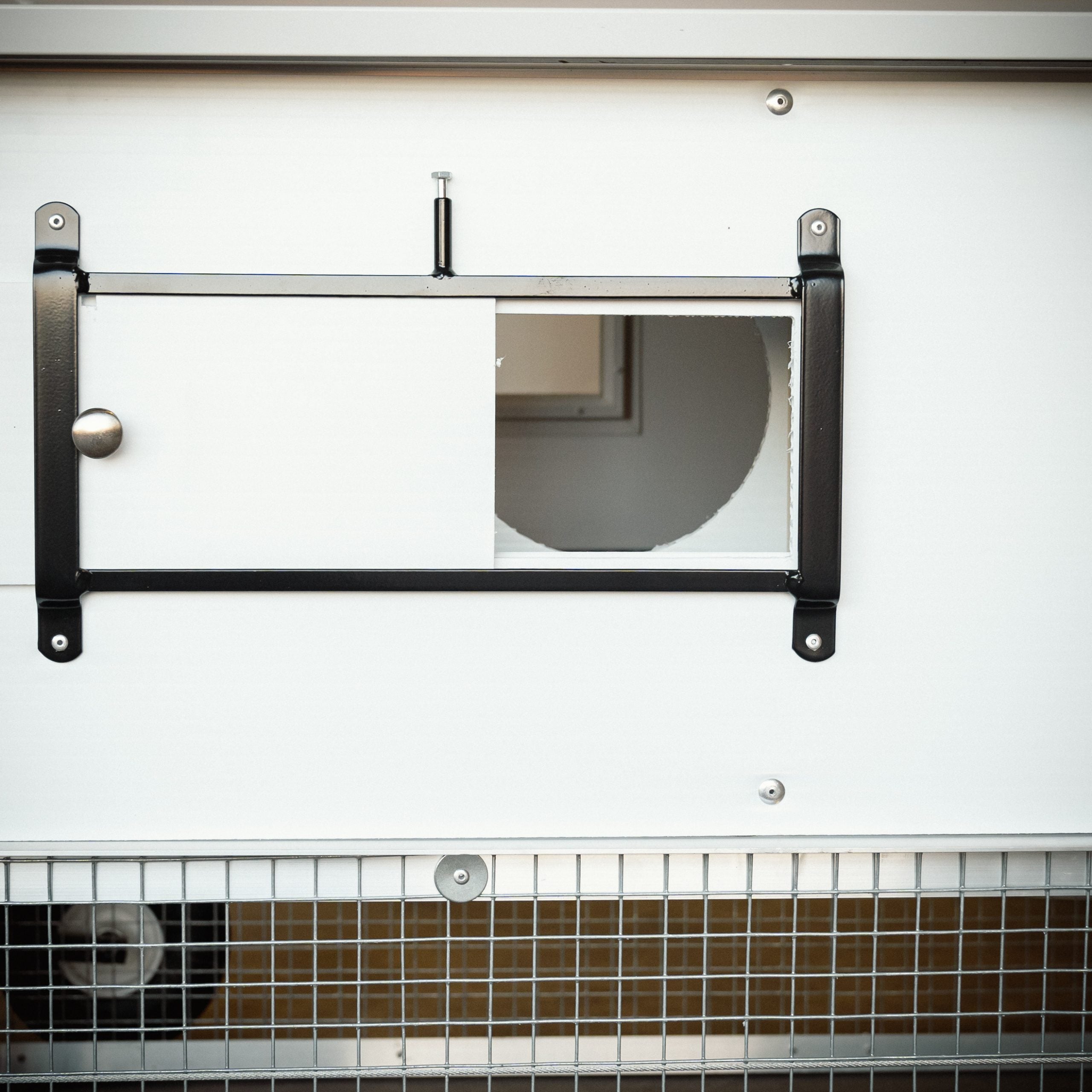 The sliding gate allows the chickens to enjoy free-range access to your yard, whenever you wish for it.